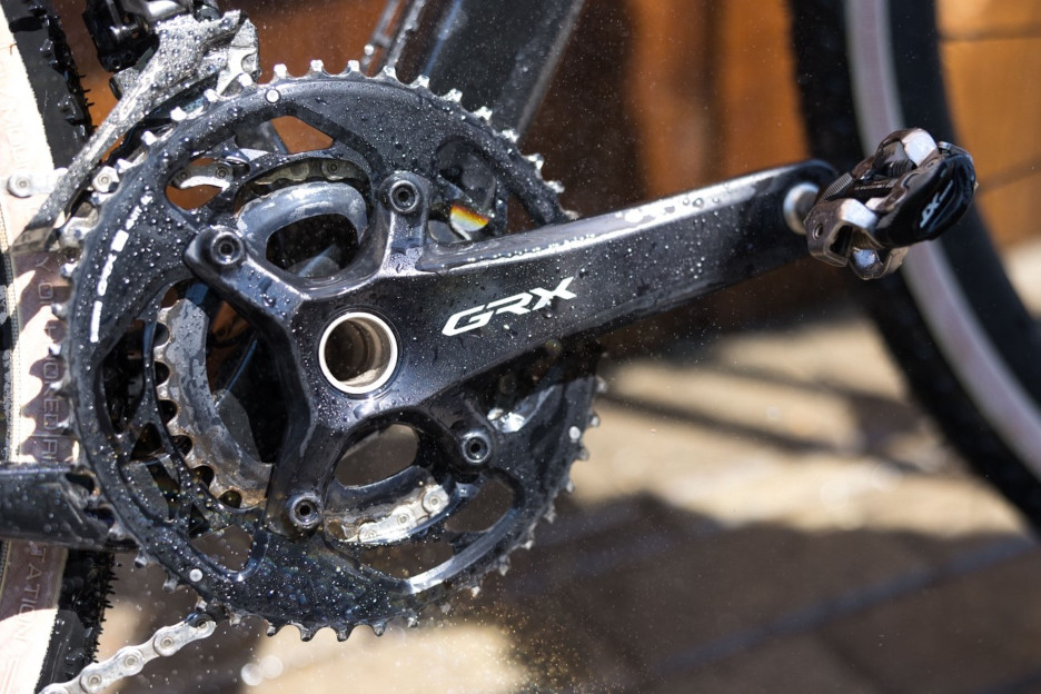 Para que la transmisión de una bicicleta de gravel, que puede rodar buena parte del tiempo por zonas accidentadas y bacheadas, ofrezca un buen rendimiento es necesario que la cadena, por ejemplo, mantenga siempre una tensión óptima. Por ese motivo un grupo como el GRX RX820 cuenta con tecnologías como el Shadow RD+. Este concepto proviene de otras transmisiones ya utilizadas en el ciclismo de montaña y consiste en un mecanismo de embrague que mantiene una tensión más constante en la cadena y evita además que esta golpee con la vaina del cuadro.